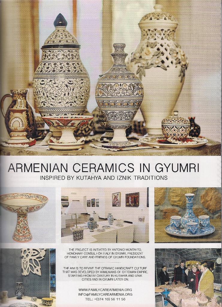 The project is initiated by Antonio Montalto, Honorary Consul of Italy in Armenia, president of Family Care and Friends of Gyumri Foundations. The aim is to use art as a way of reviving Gyumri and the ceramic handicraft culture that was developed by Armenians of Ottoman Empire, starting from XV century in Kutahya and Iznik.